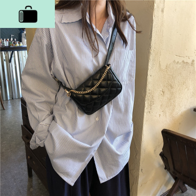 新款百搭ins菱格单肩斜挎腰包女潮2020超火胸包迷你皮小包包女NEW LAKE 黑色女斜挎包