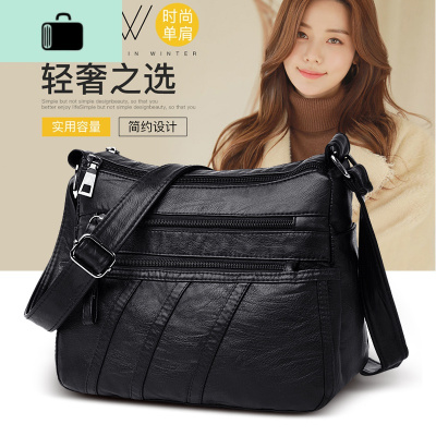 包包女2020新款潮韩版百搭斜挎单肩软皮中老年女士大容量妈妈挎包NEW LAKE 黑色女士单肩包