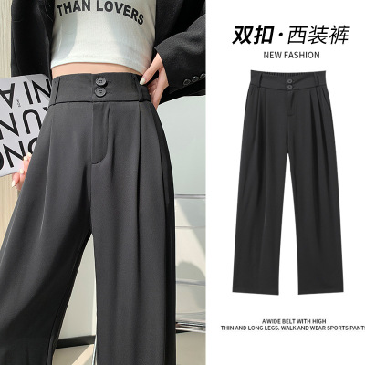 西装裤女裤子春秋新款宽松高腰阔腿裤垂坠感直筒小个子拖地长裤女