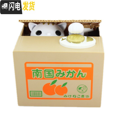 三维工匠犬储蓄罐小狗偷钱扒钱吃钱电动音乐存钱罐创意儿童储蓄罐送礼 偷钱白猫(送电池贴纸)