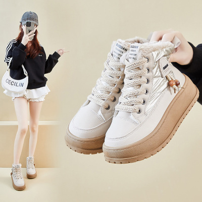 加绒高帮雪地靴女冬季新款学生ins韩版保暖休闲厚底增高