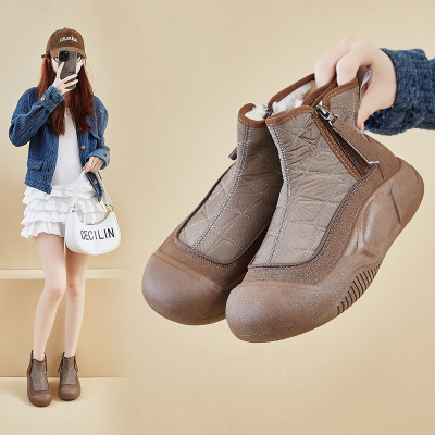 厚底女鞋新款冬季高帮加绒保暖老爹鞋百搭休闲雪地靴