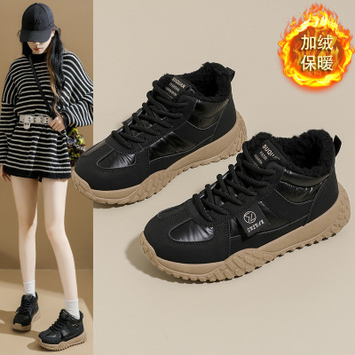 加绒高帮雪地靴女冬季新款学生ins韩版保暖休闲厚底棉鞋
