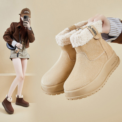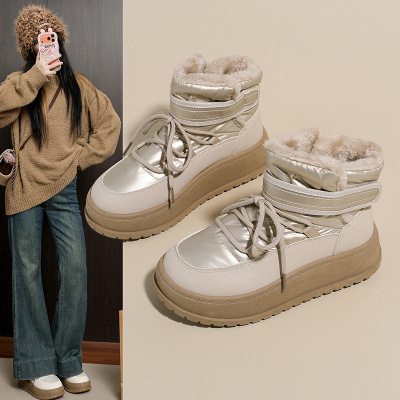 加绒高帮雪地靴女冬季新款学生ins韩版保暖休闲厚底增高
