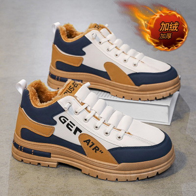 春秋季高帮男鞋新款加绒保暖棉鞋休闲工装鞋男款潮鞋马丁靴