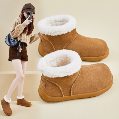 头层牛皮保暖短靴女厚底靴冬季新款女靴加绒软底毛毛靴小棉靴