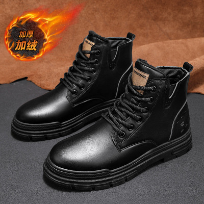 冬季加绒马丁靴英伦风复古皮面高帮系带运动靴户外防寒保暖男鞋