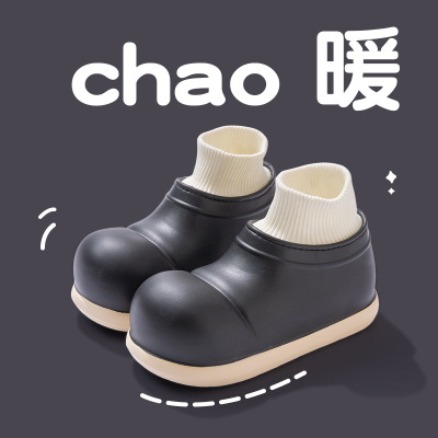 冬季加绒居家户外休闲厚底百搭棉鞋可爱风套脚保暖雪地靴女鞋