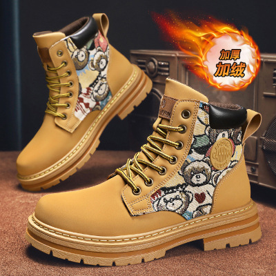 马丁靴冬季男鞋加绒保暖高帮英伦风复古户外工装大靴子棉鞋
