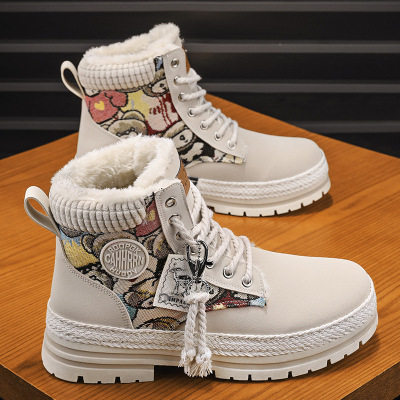 2023冬季新款男士黑色休闲皮靴板鞋男款潮鞋马丁靴男加绒保暖棉鞋