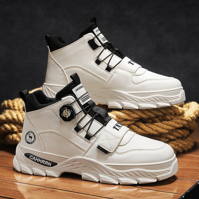 高帮男鞋秋冬款厚底防滑白色马丁靴休闲运动工装板鞋劳保登山潮鞋