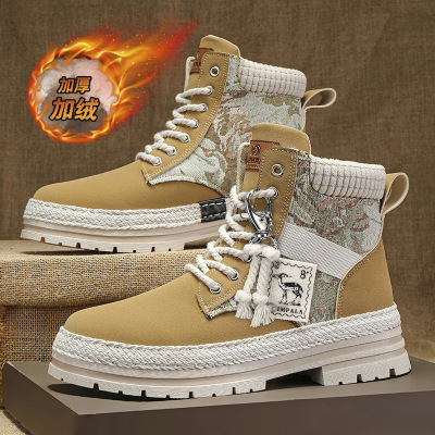 秋冬新款马丁靴男高帮复古运动休闲厚底加绒保暖棉鞋防寒舒适潮鞋
