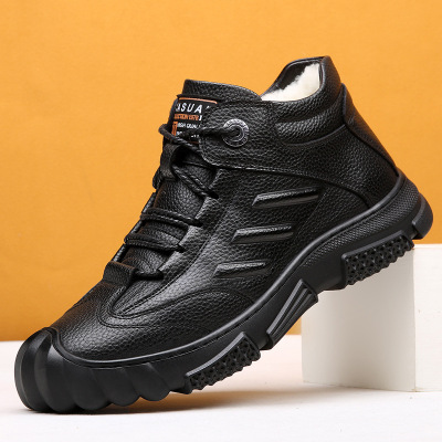 冬季新款国潮百搭休闲工装靴高帮皮面厚底运动加绒加厚保暖马丁靴