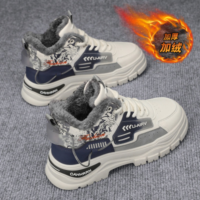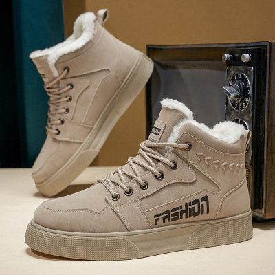 大码冬季时尚百搭男士加厚雪地靴保暖抗寒复古休闲鞋高帮板鞋