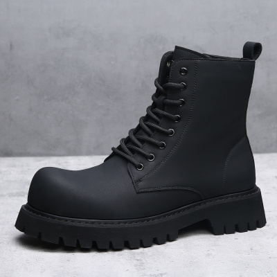 冬季新款长筒马丁靴男英伦暗黑高帮机车靴子厚底增高加绒皮靴
