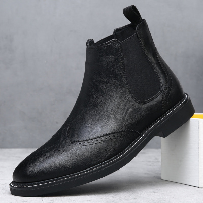 切尔西靴男英伦风花短靴软皮复古高帮男款皮靴秋冬季加绒马丁靴