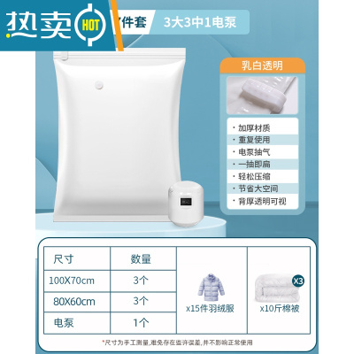 敬平真空压缩袋收纳袋被子衣物衣服家用旅行抽空气棉被行李箱专用袋子 乳白7件套[3大3中1电泵] 工厂店-365天质量保证