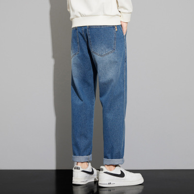 重磅牛仔裤男式 直筒青春流行百搭休闲裤 复古做旧街头阔腿裤