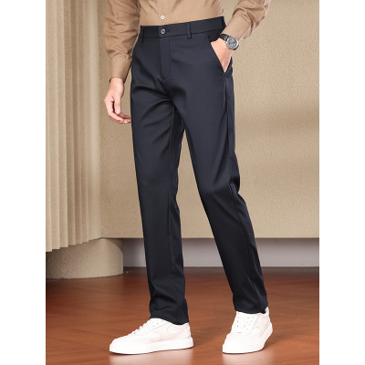 秋冬款桑蚕丝裤子男宽松百搭弹力顺滑垂感商务直筒休闲裤男式