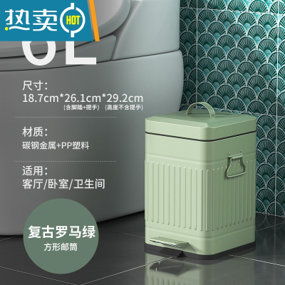 敬平方形复古垃圾桶厨房家用客厅大容量大号高颜值脚踏式带盖卧室