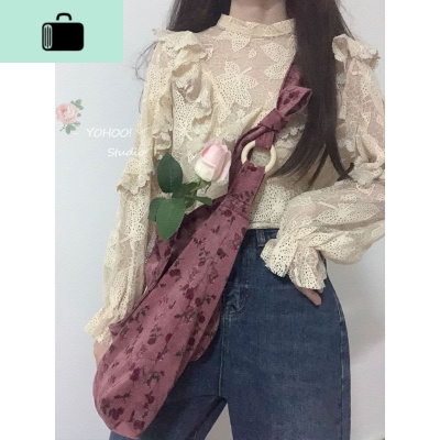 YOHOO!/原创 复古优雅玫瑰花梅子色灯芯绒单肩斜挎包帆布袋女insNEW LAKE 梅子色(可单肩斜挎)女斜挎包