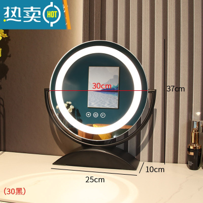 敬平带灯镜子化妆镜台式led灯大桌面梳妆台镜网红美妆宿舍补光镜便携式用镜 [旋转款]黑色灯带直径30(充电款)