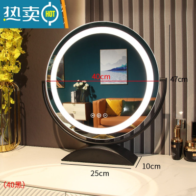 敬平带灯镜子化妆镜台式led灯大桌面梳妆台镜网红美妆宿舍补光镜便携式用镜 [旋转款]黑色灯带直径40(充电款)