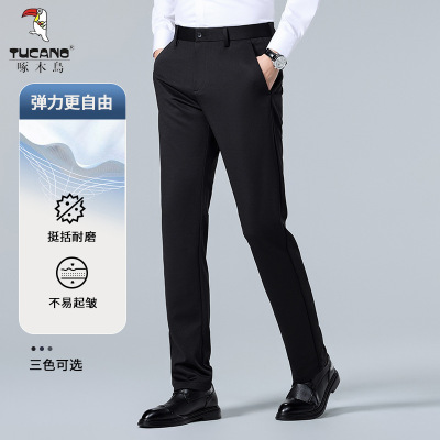啄木鸟西裤男士商务正装2025秋冬新款潮修身直筒休闲加绒加厚长裤