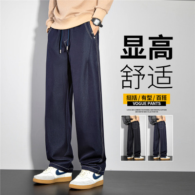 秋冬新款男士牛仔裤黑色美式潮牌直筒宽松青少年显高显瘦阔腿长裤