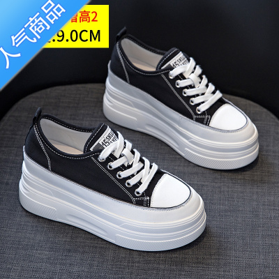 SUNTEK帆布鞋女夏季薄款2023年新款百搭透气松糕厚底内增高女鞋休闲板鞋