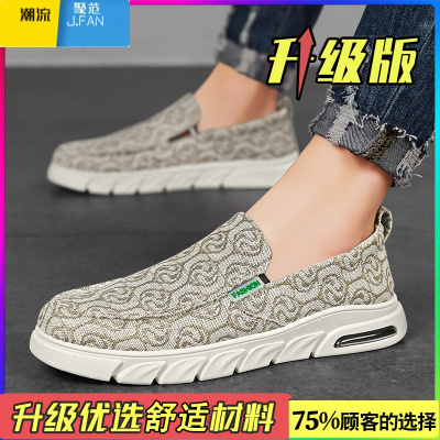 聚范帆布男鞋夏季透气懒人一脚蹬休闲板鞋男款工作运动亚麻老北京布鞋