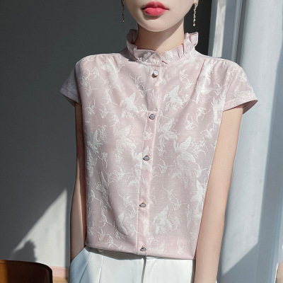 轻薄透气感女士花边领天丝三分袖背心夏季新款清新甜美风针织坎肩