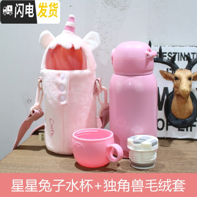 三维工匠网红独角兽水杯抖音成人斜挎兔子杯套女学生水壶儿童保温杯带吸管 毛绒星星款独角兽/500