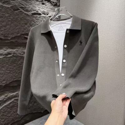 跨潮牌小马刺绣针织开衫男秋季新款翻领休闲长袖毛衣男士外套