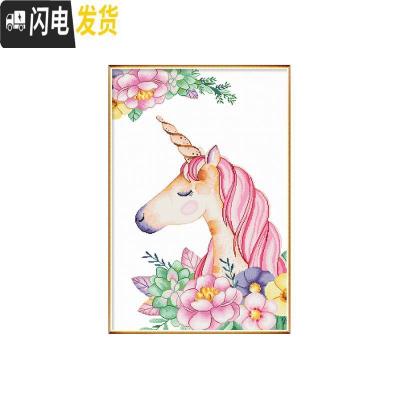 三维工匠十字绣2019新款线绣三联客厅简约现代火烈鸟独角兽小幅自己 [埃及棉][单幅4097-梦幻花园3]62*85厘米
