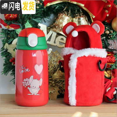 三维工匠独角兽杯子网红保温杯创意个性潮流学生好看的水杯女外出可爱斜 红色小老鼠吸管保温杯配毛绒杯套316不锈钢双盖350