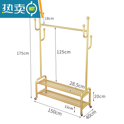 敬平双层衣帽架阳台折叠晾衣杆寝室宿舍移动挂衣架省空间衣服架带轮子 纳米金色长150高175配2.0轮子