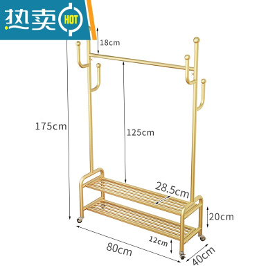 敬平双层衣帽架阳台折叠晾衣杆寝室宿舍移动挂衣架省空间衣服架带轮子 纳米金色长80高175配2.0轮子