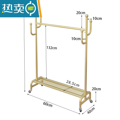 敬平移动衣帽架室内挂衣服架服装店挂衣杆家用简约省空间晾衣架带轮子 纳米金长60高172配2.0轮子晾衣杆