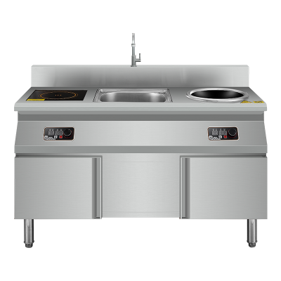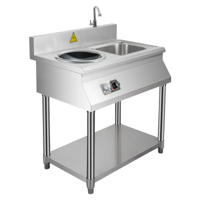 欢呼好太太商用电磁炉大功率不锈钢大锅灶商用电灶台饭店食堂煲汤电磁灶工业炉炒猛火灶5000W凹面带水槽支架款380V