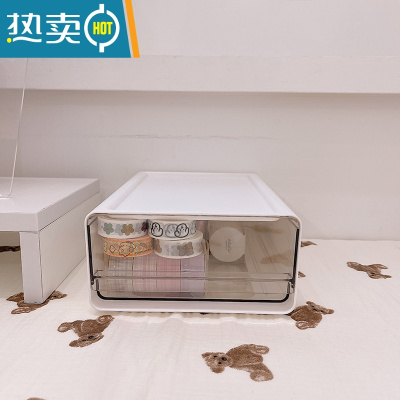 敬平ins风简约桌面收纳盒叠加抽屉式整理盒宿舍杂物盒 透明组合收纳柜