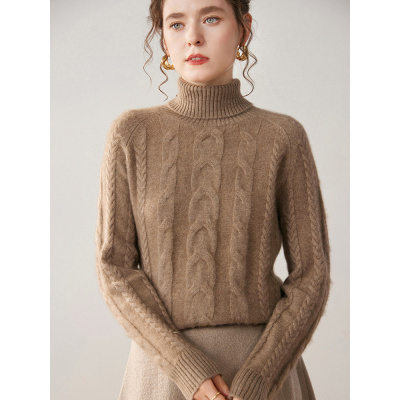 秋冬双股加厚保暖内搭山羊绒衫针织衫女高领套头毛衣宽松打底衫女