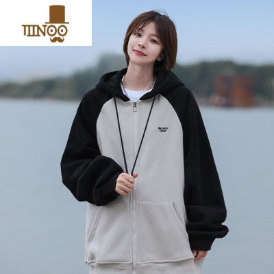 YANXUoversize潮牌插肩袖开衫卫衣男2023新款美式复古连帽外套
