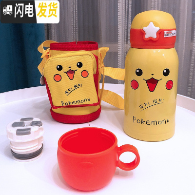 三维工匠卡通儿童316不锈钢可斜跨带套吸管保温杯男女学生便携大容量水壶 黄色皮卡儿童壶送斜跨杯套+杯刷