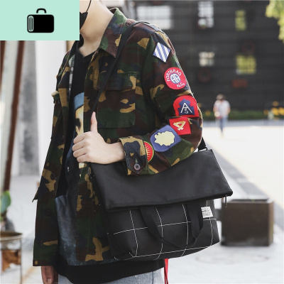 港风斜挎书包手提多功能帆布文艺挎包男士单肩包潮休闲学生斜跨包NEW LAKE