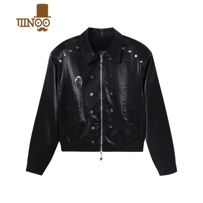YANXU美式感短款垫肩夹克男潮牌金属设计感翻领宽松机车外套