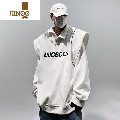 YANXU潮牌假polo领卫衣宽松廓形高街oversize长袖垫肩外套男
