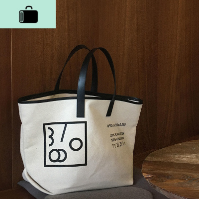 包包女2020新款ins大容量单肩帆布包慵懒风布袋包手提字母托特包NEW LAKE 米白色女手包