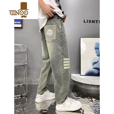 YANXU2023年新款四杠瓦萨奇水洗网红同款宽松直筒百搭新潮流男女牛仔裤