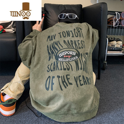 YANXU美式复古长袖t恤男欧美hiphop设计感卫衣外套潮牌痞帅上衣服